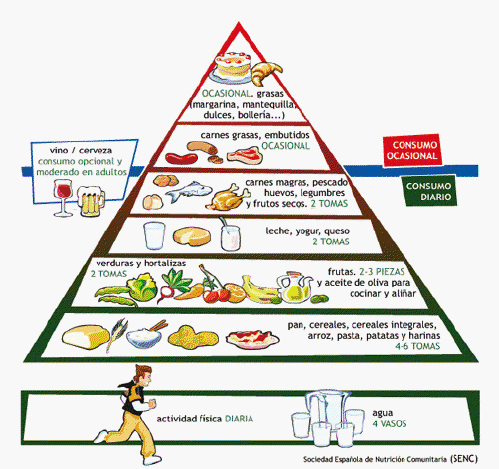 La pirámide nutricional, nos sirve de guía para ver que alimentos tenemos que consumir diariamente para que nuestro organismo obtenga los nutrientes que necesita, con el fin de mantenernos lo más sanos posible.