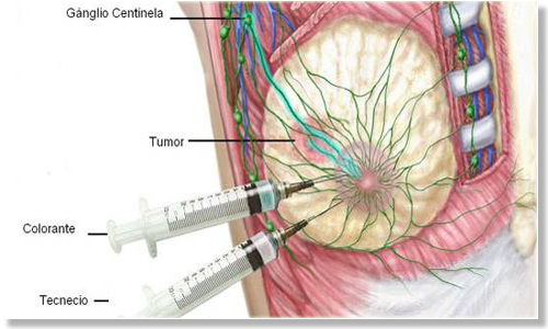 Tras inyectar en la mama un colorante (una tinta especial) o un isótopo radioactivo (producto que se inyecta y emite una mínima radiación que siendo inócua, facilita su localización) o ambos, estos se dirigen a la axila para señalar el primer ganglio axilar que las células tumorales podrían alcanzar, permitiendo así al cirujano identificarlo y extirparlo para su análisis.